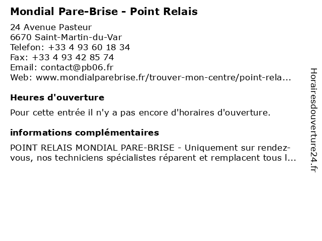 | Appeler Mondial Pare-Brise - Point Relais | |