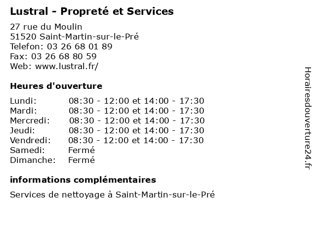 | Lundi | 08:30-12:00 et 14:00-17:30 |