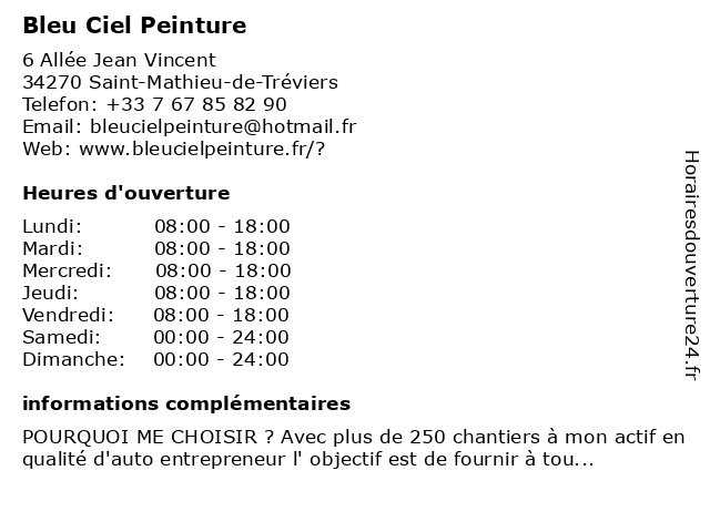 1 F. Capelli Peinture (Distance: 8,46 km) 209 Rue du Mas de Finet, 34980 Saint-Gély-du-Fesc capelli, f., peinture 2 Bleu Cerise (Distance: 10,78 km) . RN 113, 13127 Vitrolles beaute, bleu, boutique, cerise, deco, maison, mode enfants, mode femmes, mode hommes, restaurant, sport 3 S Peinture (Distance: 11,94 km) 36 Rue des Moulières, 34830 Clapiers aménagement, décoration, peinture, ravalement façade, revêtement, speinture 4 Entreprise Larroque Peinture (Distance: 12,50 km) 26 Chemin Ancien de Saint-Jean de Cornies, 34160 Sussargues entreprise, larroque, peinture 5 Eléphant Bleu (Distance: 15,17 km) - Route de Ganges, 34980 Saint Clement De Riviere accessoires, bleu, d'ouverture, eléphant, eléphant bleu, horaires, motos, voitures 6 Sud Peinture Richard Jonathan (Distance: 15,92 km) 1 avenue de la tramontane, 34130 Saint-Aunès bâtiment, jonathan, peinture, richard, saint-aunès, sud |