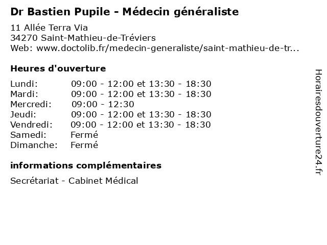 | Mardi | 09:00-12:00 et 13:30-18:30 |