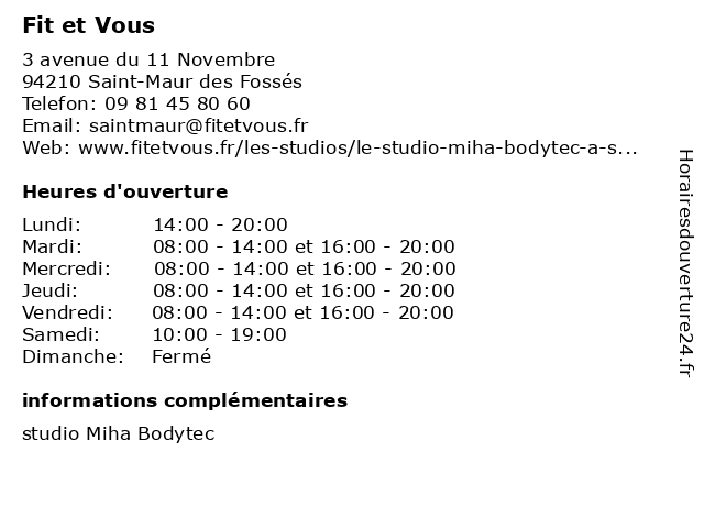 Horaires d'ouverture |