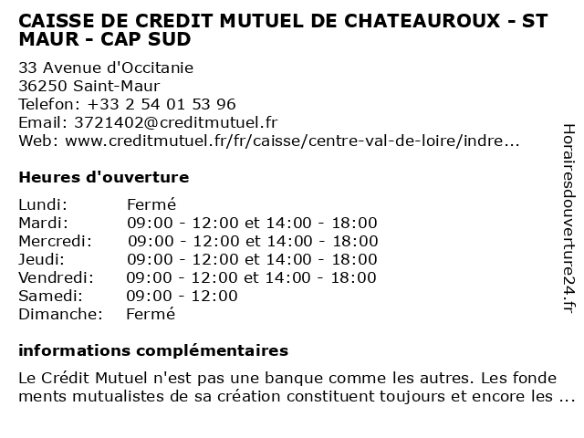 Termes de recherche pour CAISSE DE CREDIT MUTUEL DE CHATEAUROUX - ST MAUR - CAP SUD:cap, de, st, chateauroux, crédit, sud, mutuel, caisse, maur |