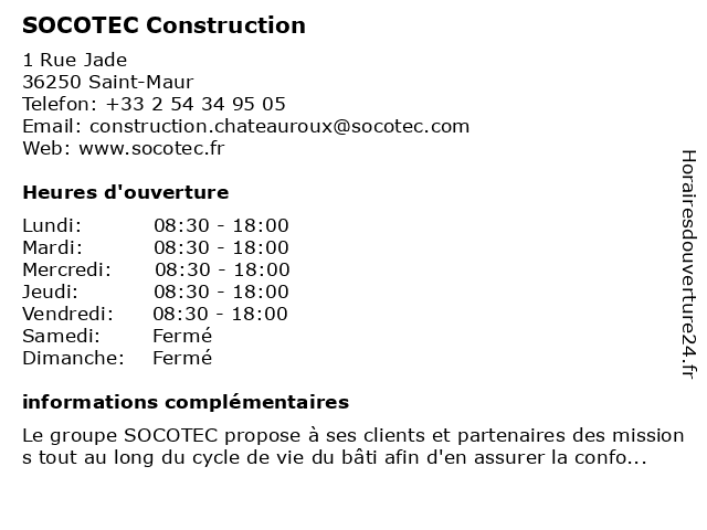 1 Socotec - Agence Équipements & Industrie (Distance: 0,03 km) 3 rue Colbert, 36000 Châteauroux agence, bâtiments, construction, contrôles, formation, industrie, socotec, équipements 2 BUREAU VERITAS CONSTRUCTION (Distance: 1,50 km) 19 Avenue Pierre de Coubertin, 36000 Châteauroux bureau, construction, veritas 4 Bureau Veritas Construction (Distance: 4,88 km) Rue Sud Aviation, 36130 Déols bureau, construction, veritas 6 |