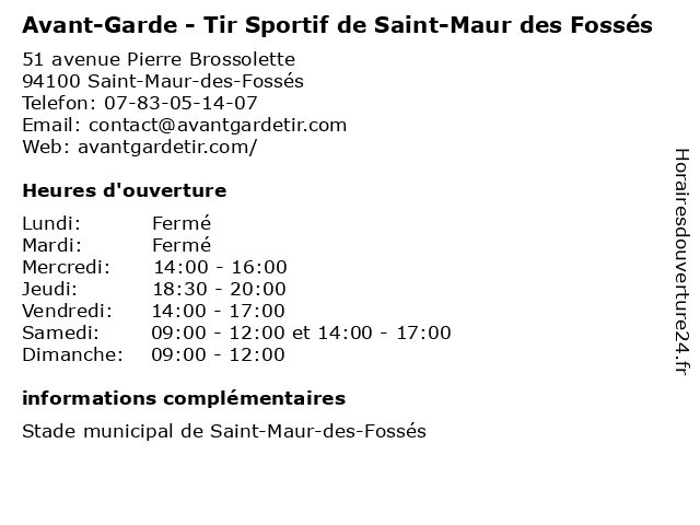 | Samedi | 09:00-12:00 et 14:00-17:00 |