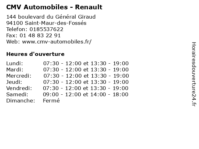 | Vendredi | 07:30-12:00 et 13:30-19:00 |