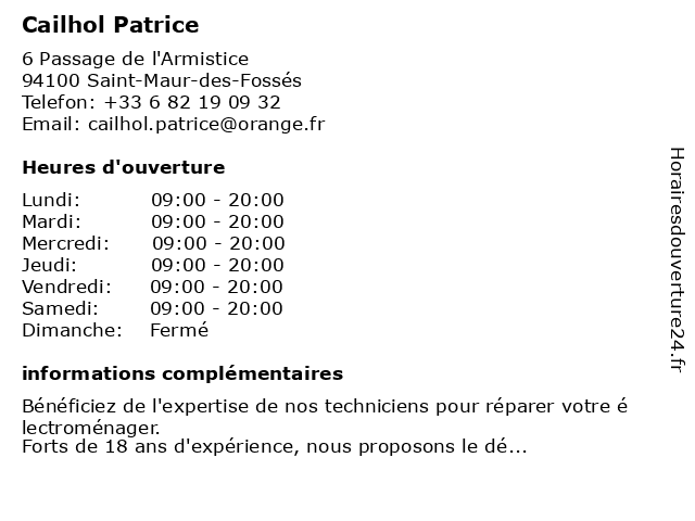 | Dimanche | Fermé |