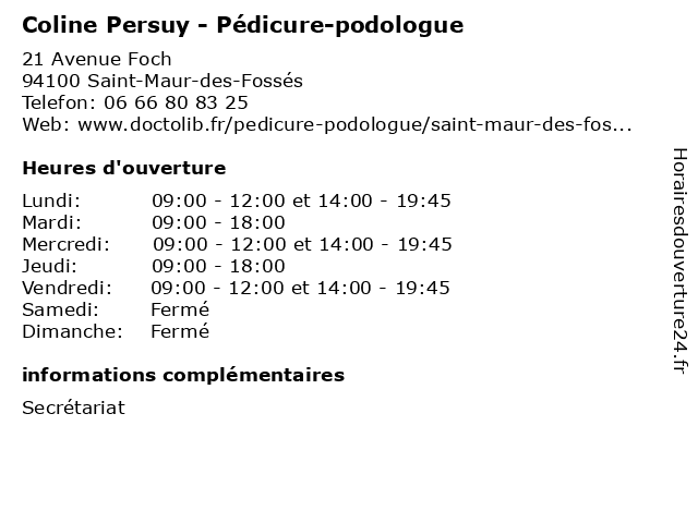 1 Sarah Oueslati - Pédicure-podologue (Distance: 0,08 km) 12 Avenue des Arts, 94100 Saint-Maur-des-Fossés cheville, orteil, oueslati, pied, podologue, pédicure, sarah 2 Nathalie Perrot-Minnot Lyonnet - Pédicure-podologue (Distance: 0,38 km) 32 Avenue Emile Zola, 94100 Saint-Maur-des-Fossés lyonnet, minnot, nathalie, orthoplastie, perrot, podologue, pédicure, pédicurie 3 Bérénice Dehaut - Pédicure-podologue (Distance: 0,56 km) 67-69 Avenue de la République, 94100 Saint-Maur-des-Fossés bérénice, cheville, dehaut, orteil, pied, podologue, pédicure 4 Bruno Delos - Pédicure-podologue (Distance: 0,64 km) 67 Avenue Carnot, 94100 Saint-Maur-des-Fossés bruno, cheville, delos, orteil, pied, podologue, pédicure 5 Audrey Célina - Pédicure-podologue (Distance: 0,73 km) 1 Rue d'Inkermann, 94100 Saint-Maur-des-Fossés audrey, cheville, célina, orteil, pied, podologue, pédicure 6 Ségolène Perrey - Pédicure-podologue (Distance: 1,27 km) 30 Boulevard de Champigny, 94210 Saint-Maur-des-Fossés médecin, médecine, médical, perrey, pharmaceutique, podologue, pédicure, ségolène, traitement |