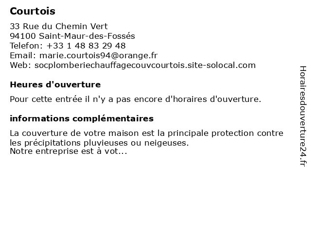 1 Dr Stéphane Courtois - Médecin généraliste (Distance: 5,15 km) 2 rue des Pères Camilliens, 94360 Bry-sur-Marne consultation, courtois, docteur, dr, généraliste, med, médecin, stephane, stéphane, traitement 2 Dr. Courtois Valérie - Psychologue (Distance: 7,62 km) . Avenue Aristide Briand, 93160 Noisy-le-Grand courtois, docteur, dr., medecins, psychologue, sante, valérie 3 Pierre Courtois - Masseur-kinésithérapeute (Distance: 10,08 km) 7-9 Rue de l'Asile Popincourt, 75011 Paris courtois, kiné, kinésithérapeute, masseur, pierre, rééducation, soin 4 Dr Céline Courtois - Chirurgien-dentiste (Distance: 11,74 km) 29 Rue de Turbigo, 75002 Paris celine, chirurgien, courtois, céline, dentiste, dr, médecin, médecine, médical, pharmaceutique, secrétariat, traitement 5 Financiere Courtois (Distance: 11,79 km) 105 Boulevard De Sebastopol, 75002 Paris courtois, financiere, restaurants 6 Boucherie Pascal Courtois (Distance: 12,88 km) 52 Boulevard Pasteur, 94260 Fresnes boucherie, charcuterie, courtois, pascal, service, viandes |
