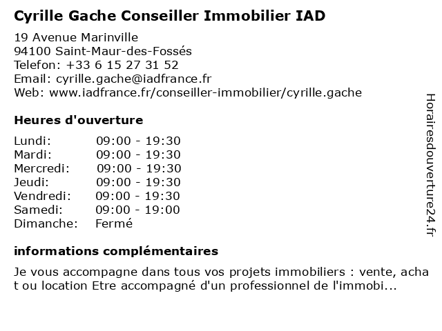 | Vendredi | 09:00-19:30 |