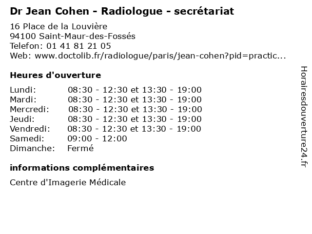 | Lundi | 08:30-12:30 et 13:30-19:00 |