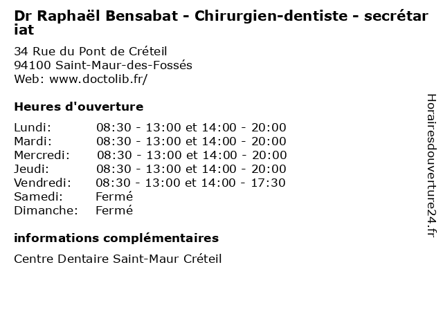 | Lundi | 08:30-13:00 et 14:00-20:00 |