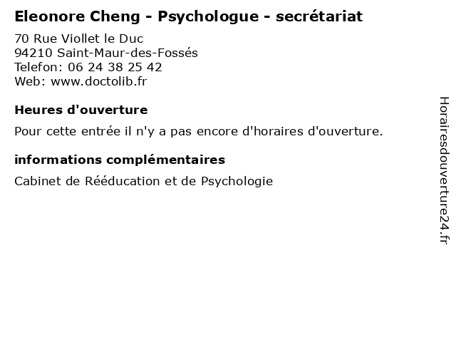 | Appeler Eleonore Cheng - Psychologue - secrétariat | |