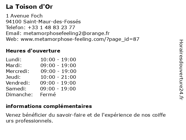 | Dimanche | Fermé |