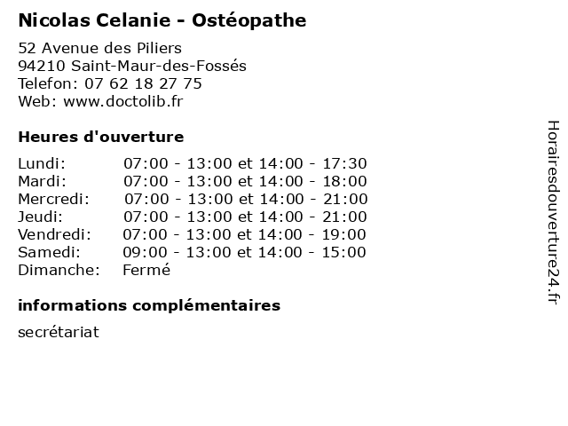 | Lundi | 07:00-13:00 et 14:00-17:30 |