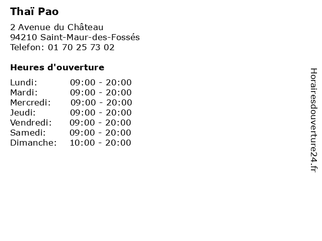 1 Thaï-K-Fusion (Distance: 3,65 km) 9 Av. Eugène Courel, 94500 Champigny-sur-Marne bar, fusion, karaoké, restaurant de fusion asiatique, restaurant familial, restaurant panasiatique, restaurant thaïlandais, restaurants, service de livraison de repas à domicile, service de livraison de restaurant, thaï 2 Le Bonheur Thaï (Distance: 4,10 km) 45 Avenue du Maréchal de Lattre de Tassigny, 94000 Creteil bar, bistro, bistrot, bonheur, brasserie, café, le, restaurant, restauration, thaï 3 Jungle Thaï (Distance: 5,66 km) 115 rue Jean Jaurès, 94700 Maisons-Alfort asiatique, cuisine du monde, fait maison, jungle, produits frais, restaurant, thaï, thaïlandais 4 Coco Thaï (Distance: 8,20 km) 17 Avenue De La République, 94600 Choisy-le-Roi coco, hk, restaurants, thai, thao, thaï 5 Bon Bon Thaï (Distance: 9,19 km) 26 Rue Georges Huchon, 94300 Vincennes boissons, bon, kroun, restaurants, thaun, thaï 6 Regal Thaï (Distance: 9,52 km) 4 Rue Marat, 94200 Ivry-sur-Seine asiatique, regal, restaurant, thai, thailandais, thaï |