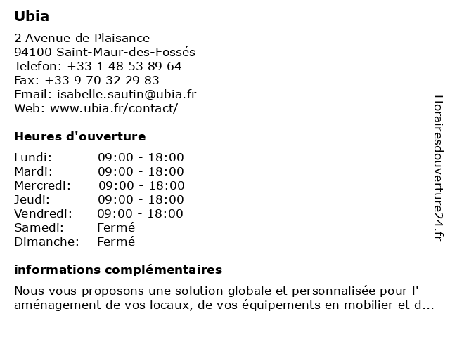 | Samedi | Fermé |