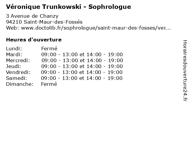 | Samedi | 09:00-13:00 et 14:00-19:00 |