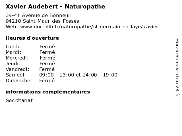 | Samedi | 09:00-13:00 et 14:00-19:00 |