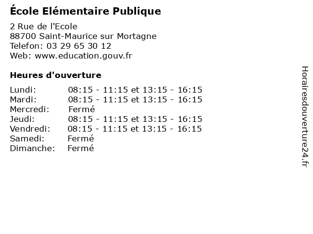 | Mardi | 08:15-11:15 et 13:15-16:15 |