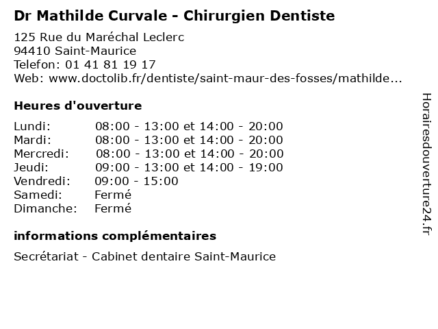 Termes de recherche pour Dr Mathilde Curvale - Chirurgien Dentiste:saint, cabinet, mathilde, dentaire, maurice, dr, dentiste, chirurgien, curvale, 94410 |