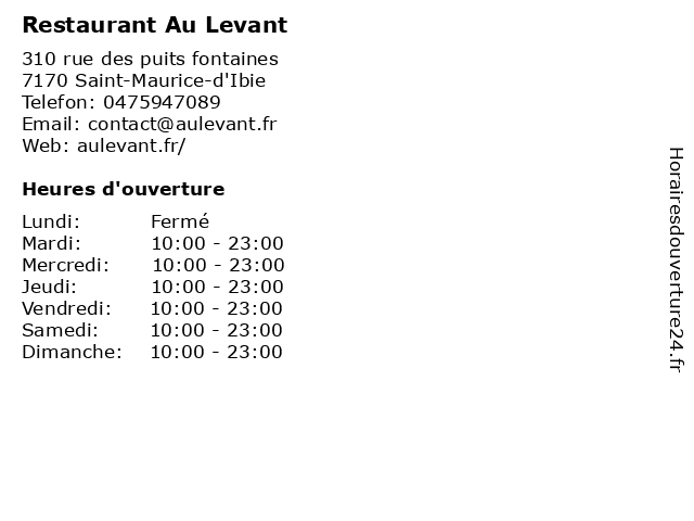 | Lundi | Fermé |