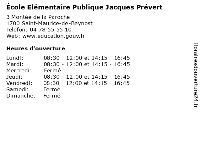 | Mardi | 08:30-12:00 et 14:15-16:45 |
