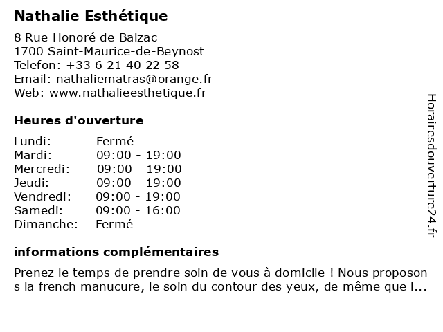 1 Nathalie Thimel Blanchoz - Pédicure-podologue (Distance: 1,02 km) 45 Rue Saint-Pierre, 01700 Beynost blanchoz, nathalie, pedicure, pied, podologue, pédicure, sante, thimel 3 Luminescence Esthétique (Distance: 2,55 km) 696 Grande Rue, 01700 Miribel esthétique, luminescence, relaxation, soins du corps, soins visage, épilation traditionnelle 4 Institut Sylvie Esthétique (Distance: 6,82 km) 9 impasse du Château, 69140 Riileux-La-Pape beauté, corps, epilation, esthétique, institut, minceur, peeling, soins, sylvie, visage 5 Céline Coiffure Esthétique (Distance: 7,06 km) 1 Rue Gambetta, 69330 Meyzieu beauté, coiffeur, coiffure, céline, esthétique, salon 6 |