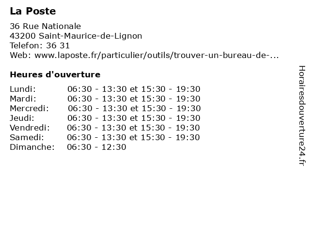 1 La Poste (Distance: 3,56 km) - Place de la Mairie, 43600 Les Villettes agence, assurance, banque, banque postale, bureau de poste, chronopost, colis, courrier, dps, expéditions internationales, la, point, postale, poste, relais, timbres, téléphonie, ups, western union 2 La Poste (Distance: 5,50 km) - Le Bourg, 43200 Saint Jeures colis, express chronopost, expédition, la, poste, réexpédition internationale, service, suivi du courrier 3 La Poste (Distance: 5,50 km) Le Bourg, 43200 Grazac agence, assurance, banque, banque postale, bureau de poste, chronopost, colis, courrier, dps, expéditions internationales, la, point, postale, poste, relais, timbres, téléphonie, ups, western union 6 |