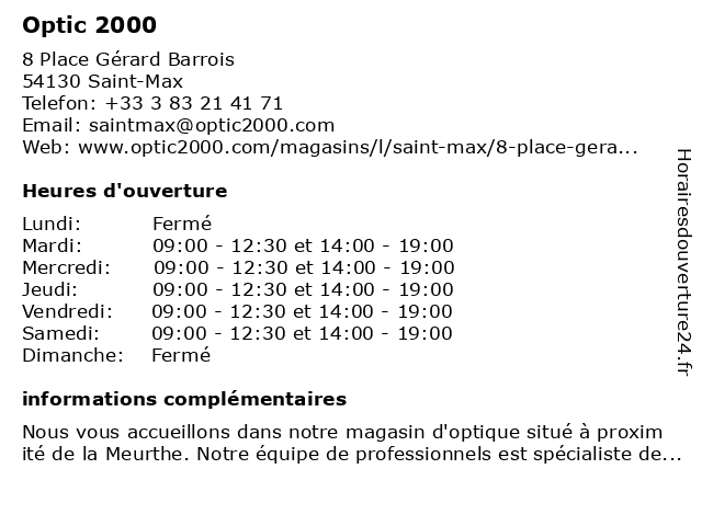 | Mercredi | 09:00-12:30 et 14:00-19:00 |