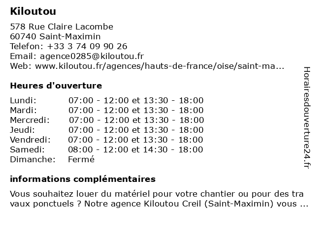 | Samedi | 08:00-12:00 et 14:30-18:00 |