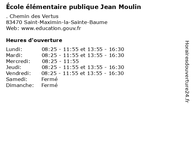 | Mardi | 08:25-11:55 et 13:55-16:30 |