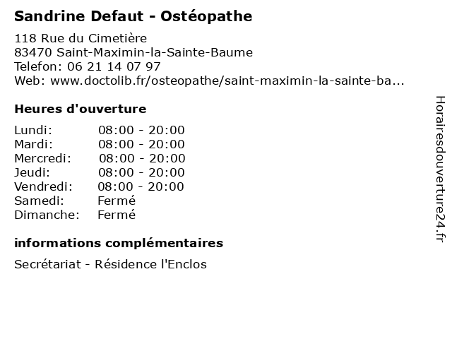 | Vendredi | 08:00-20:00 |