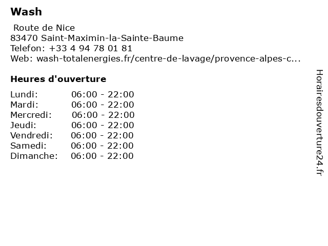1 TOTAL Wash - Centre de Lavage (Distance: 0,11 km) - Route De Nice - RN7, 83470 Saint-Maximin-la-Sainte-Baume centre, de, entretien, groupe, lavage, lavages, total, véhicules, wash 2 Organik Wash (Distance: 18,17 km) - Route de Nice, 83170 Brignoles neuves, occasion, organik, vente, voitures, wash 3 Wash'n Dry (Distance: 37,05 km) 224 Rue Emile Ollivier, 83000 Toulon dry, laverie, maintenance, service, wash'n 4 American Car Wash (Distance: 40,72 km) 2 Rue de Lisbonne, 13480 Cabries american, beaute &sante, bijoux, boutigue, car, decoration, mode femmes, mode hommes, optique, restaurants, sport, wash 5 Wash'n Dry (Distance: 41,79 km) 27 Boulevard de la Liberation, 13001 Marseille dry, laverie, maintenance, service, wash'n 6 Wash'n Dry (Distance: 42,15 km) 145 Avenue de Saint-Louis, 13015 Marseille dry, laverie, maintenance, service, wash'n |