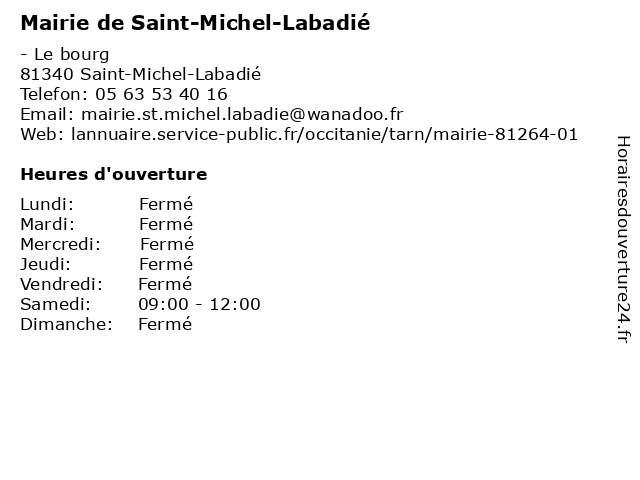 Termes de recherche pour Mairie de Saint-Michel-Labadié:de, saint, administration, mairie, service, michel, assoc public, labadie |