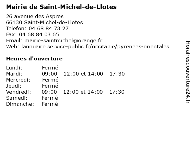 | Mardi | 09:00-12:00 et 14:00-17:30 |