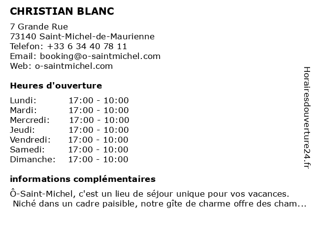 1 Societe d'Exploitation Du Rey-Blanc (Distance: 13,71 km) Les Menuires, 73440 St Martin De Belleville blanc, exploitation, restaurants, rey, societe 2 Le Genepie Blanc (Distance: 16,38 km) L Alpage Charvin, 73300 Villarembert blanc, genepi, genepie, restaurants 3 Green Acres (Novel Christian) (Distance: 19,28 km) n/a Le Pré, 73530 Saint-Sorlin d'Arves acres, apartment rentals, christian, green, home sales, novel, real estate 4 5 Dr Claude Blanc - Médecin généraliste (Distance: 30,38 km) 17 Rue de la Licorne, 73600 Moutiers blanc, claude, docteur, dr, generaliste, généraliste, medecin, médecin, soins 6 Serge Blanc - Pédicure-podologue (Distance: 30,39 km) 18 Rue de la Licorne, 73600 Moutiers blanc, pedicure, pied, podologue, pédicure, sante, serge |