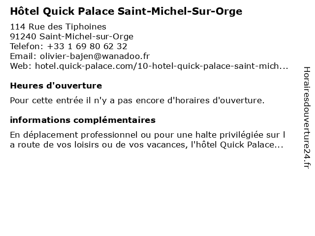 | Appeler Hôtel Quick Palace Saint-Michel-Sur-Orge | |