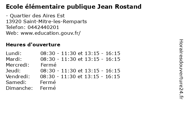 | Mardi | 08:30-11:30 et 13:15-16:15 |