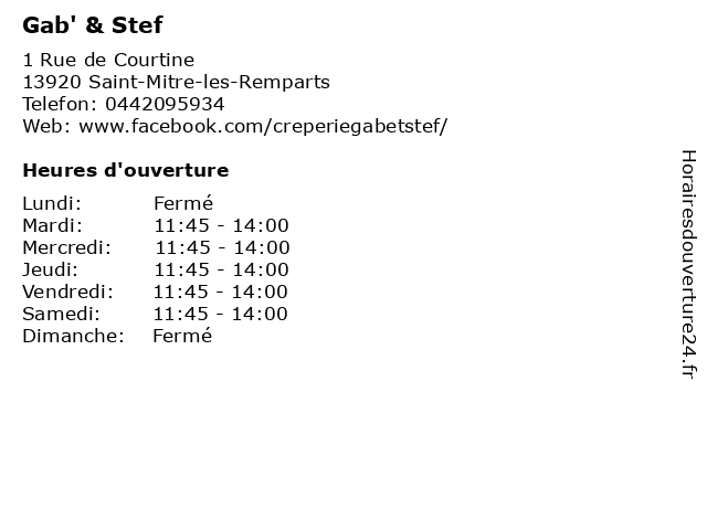 Termes de recherche pour Gab' & Stef:restauration, restaurant, café, bar, bistrot, brasserie, crêperie, pub, resto, bistro, stef, gab' |