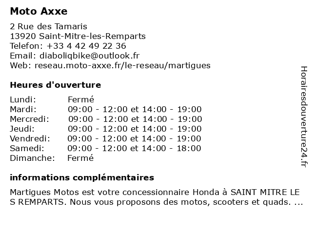 | Mardi | 09:00-12:00 et 14:00-19:00 |