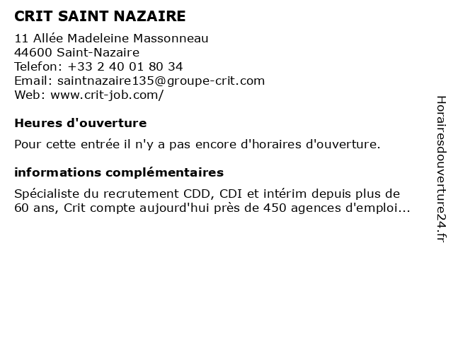 Termes de recherche pour CRIT SAINT NAZAIRE:saint, nazaire, crit |