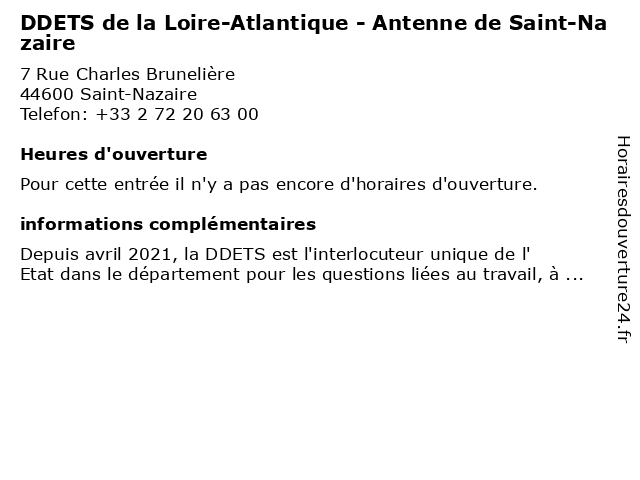 | Appeler DDETS de la Loire-Atlantique - Antenne de Saint-Nazaire | |