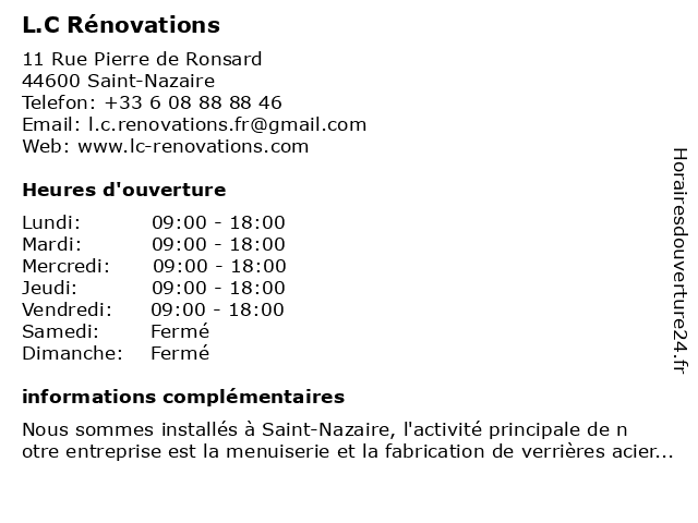 | Samedi | Fermé |