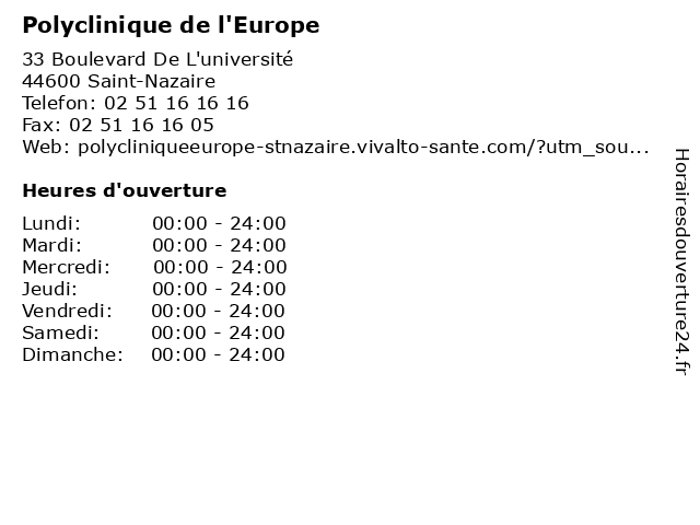 1 Laboratoire Polyclinique de l'Europe - Saint-Nazaire - BIOGROUP BRETAGNE (Distance: 0,01 km) 33 Boulevard De L'université, 44600 Saint-Nazaire biogroup, bretagne, de, dépistages, l'europe, laboratoire, laboratoire de diagnostic, nazaire, polyclinique, saint 2 L'Institut de Beauté de l'Europe (Distance: 0,33 km) 4 Allée de la Mer d'Iroise, 44600 Saint nazaire beaute, beauté, de, institut, l'europe, l'institut, produits, sante 3 The Originals City, Hôtel de l'Europe, Saint-Nazaire (Distance: 5,03 km) 2 Place Martyrs Résistance, 44600 Saint-Nazaire city, de, hôtel, l'europe, nazaire, originals, saint, the, tourisme 4 Comfort Hotel de l?Europe Saint Nazaire (Distance: 5,03 km) de la Resistance 2 place des Martyrs, 44600 Saint-Nazaire comfort, de, hotel, l?europe, nazaire, saint 5 Foncia - Agence de l 'Europe (Distance: 10,09 km) 47 avenue du Maréchal Foch, 44500 La Baule-Escoublac 'europe, agence, de, foncia, gestion, immobilier, location, transactions, vente 6 Pharmacie de l'Europe (Distance: 13,09 km) 38 Avenue de Llantwit Major, 44510 Le Pouliguen de, herboristerie, l'europe, médicaments, paramédical, parapharmacie, pharmacie, pharmacien, santé, traitements |