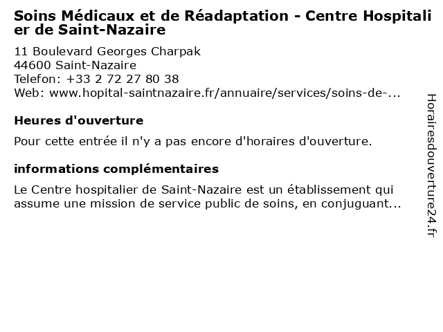 | Appeler Soins Médicaux et de Réadaptation - Centre Hospitalier de Saint-Nazaire | |