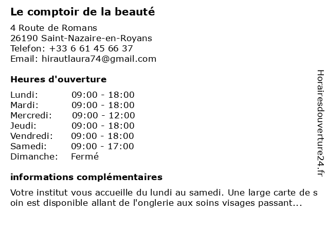 1 Passion Beauté (Distance: 10,50 km) D27, 38160 Chatte beauté, boutique de maquillage, boutique de maquillage chatte, boutique de parfums, boutique de parfums chatte, coffret cadeaux, manucure, maquillage, massage, parfumerie, parfumerie chatte, parfums, passion, passion beauté, soins corps, soins visage, épilation 3 Institut de beauté Wondercute (Distance: 11,16 km) 34 Avenue du Docteur Carrier, 38160 Saint-Marcellin beauté, de, institut, wondercute 4 Passion Beauté (Distance: 11,42 km) 95 Rue Clair, 26750 Saint-Paul-lès-Romans beauté, boutique de maquillage, boutique de maquillage saint-paul-lès-romans, boutique de parfums, boutique de parfums saint-paul-lès-romans, coffret cadeaux, maquillage, parfumerie, parfumerie saint-paul-lès-romans, parfums, passion, passion beauté 5 Comptoir Energie (Distance: 12,63 km) 21 Avenue des Allobroges, 26100 Romans-sur-Isère comptoir, energie 6 Magalie Coiffure & Beauté (Distance: 14,38 km) 108 Avenue Adolphe Figuet, 26100 Romans-sur-Isère beauté, coiffure, magalie |