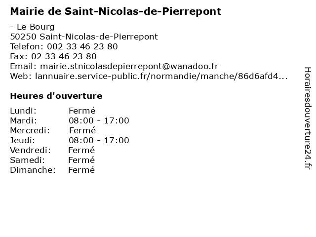 Termes de recherche pour Mairie de Saint-Nicolas-de-Pierrepont:de, saint, nicolas, mairie, central, commune, pierrepont, gouvernement, nra |