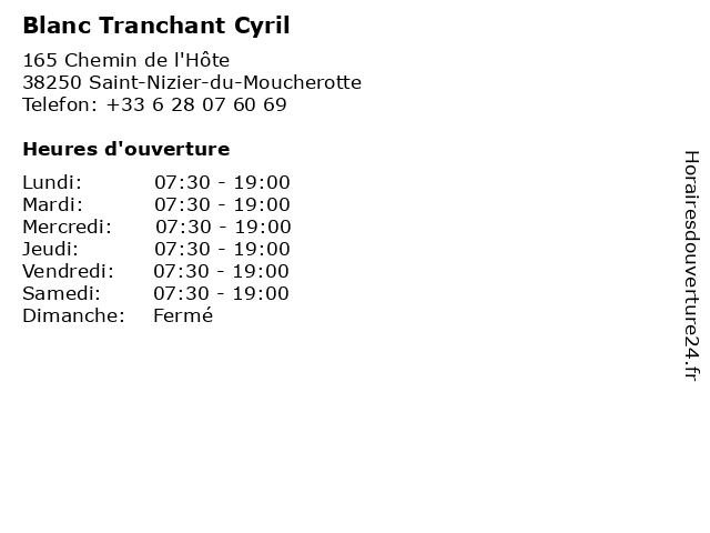 | Jeudi | 07:30-19:00 |
