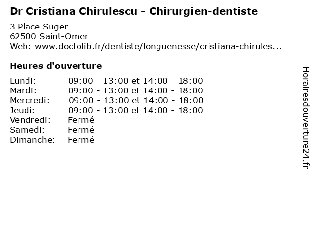 | Lundi | 09:00-13:00 et 14:00-18:00 |
