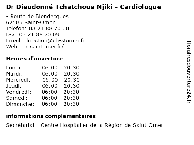 1 Dr Hélène Bardet - Cardiologue (Distance: 0,00 km) - Route de Blendecques, 62505 Saint-Omer bardet, cardiologue, consultation, docteur, dr, helene, hélène, med, médecin, médecine, traitement 2 Dr Dominique Huyart - Cardiologue (Distance: 0,00 km) - Route de Blendecques, 62505 Saint-Omer cardiologue, consultation, docteur, dominique, dr, huyart, med, médecin, médecine, traitement 3 Dr Véronique Martin-Bouyer - Cardiologue (Distance: 0,00 km) - Route de Blendecques, 62505 Saint-Omer bouyer, cardiologue, consultation, docteur, dr, martin, med, médecin, médecine, traitement, veronique, véronique 4 Dr Benoit Brullard - Cardiologue (Distance: 0,48 km) 15 Allée des Bruyères, 62219 Longuenesse benoit, brullard, cardio, cardiologie, cardiologue, coeur, dr 5 Dr Aurélie Musschoot-Herlem - Cardiologue (Distance: 0,48 km) 15 Allée des Bruyères, 62219 Longuenesse aurélie, cardio, cardiologie, cardiologue, coeur, dr, herlem, musschoot 6 Dr Damien Michel - Cardiologue (Distance: 0,78 km) - Rue Ambroise Paré, 62575 Blendecques cardio, cardiologie, cardiologue, coeur, damien, dr, michel |